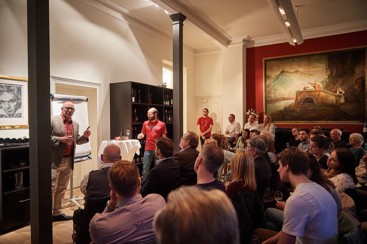 Wie versprochen, gab es auch dieses Mal keine trockene Vorlesung, sondern eine beispielreiche Tour de Force durch die Wunderwelt des Weins. Ob Müller-Thurgau aus der Literflasche, Blanc de Noirs oder edelsüßen Riesling – es gab viel zu probieren und den eigenen Wein-Geschmack zu entdecken.